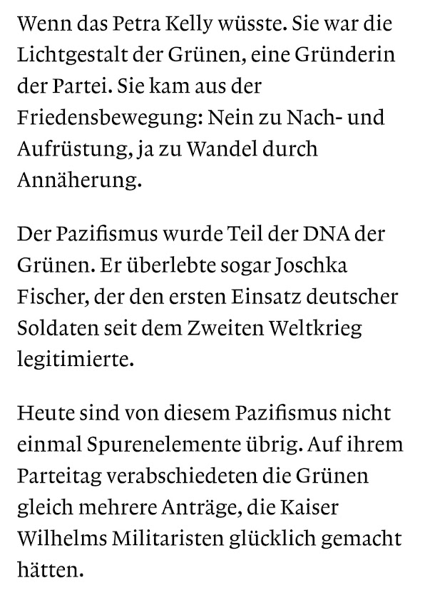 Notabene – Der Zitator  [OM] ist, als damals amtierender Stadtrat in der sächsischen Landeshauptstadt Dresden sowie Regionalbüroleiter einer Bundestagsabgeordneten, – einen Tag nach dem Bielefelder ’Kriegsparteitag’ 1999 – einst aus der Partei Bündnis 90/Die Grünen ausgetreten.